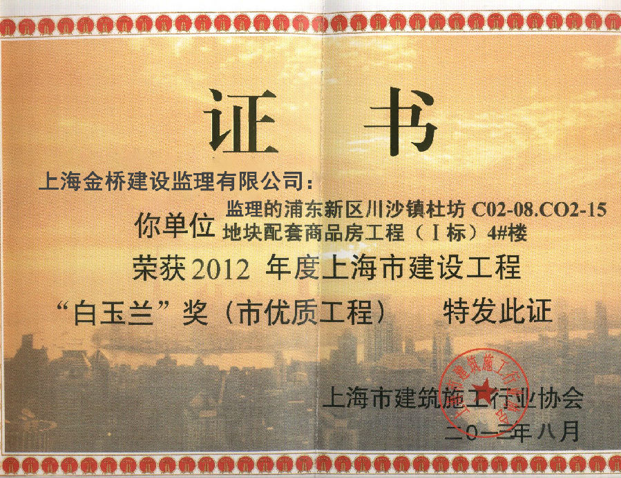 2019年度上海市建设工程“白玉兰”奖(市优质工程)