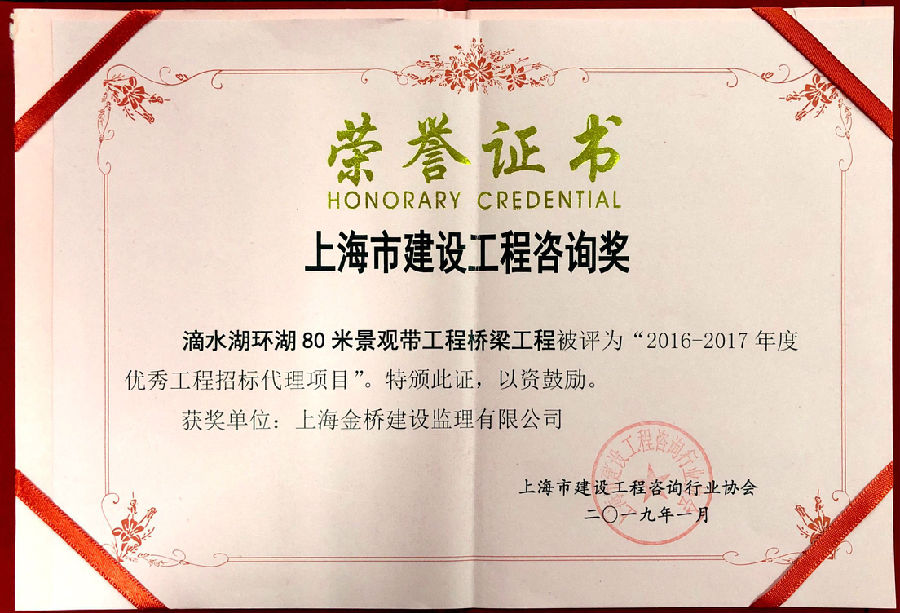 滴水湖环湖80米景观带桥梁工程获优秀招标代理项目