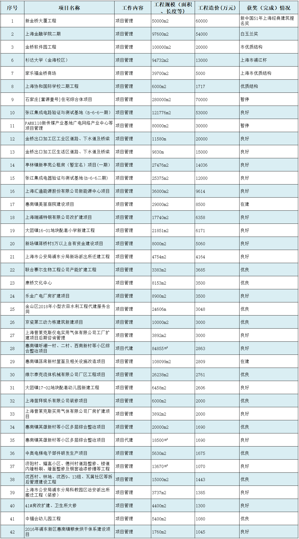 部分项目管理(代建)业绩一览表