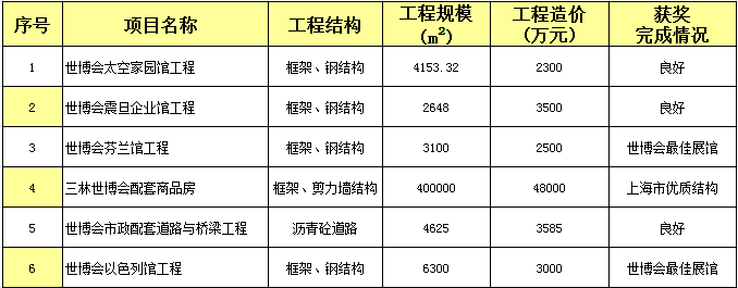 部分世博项目业绩一览表