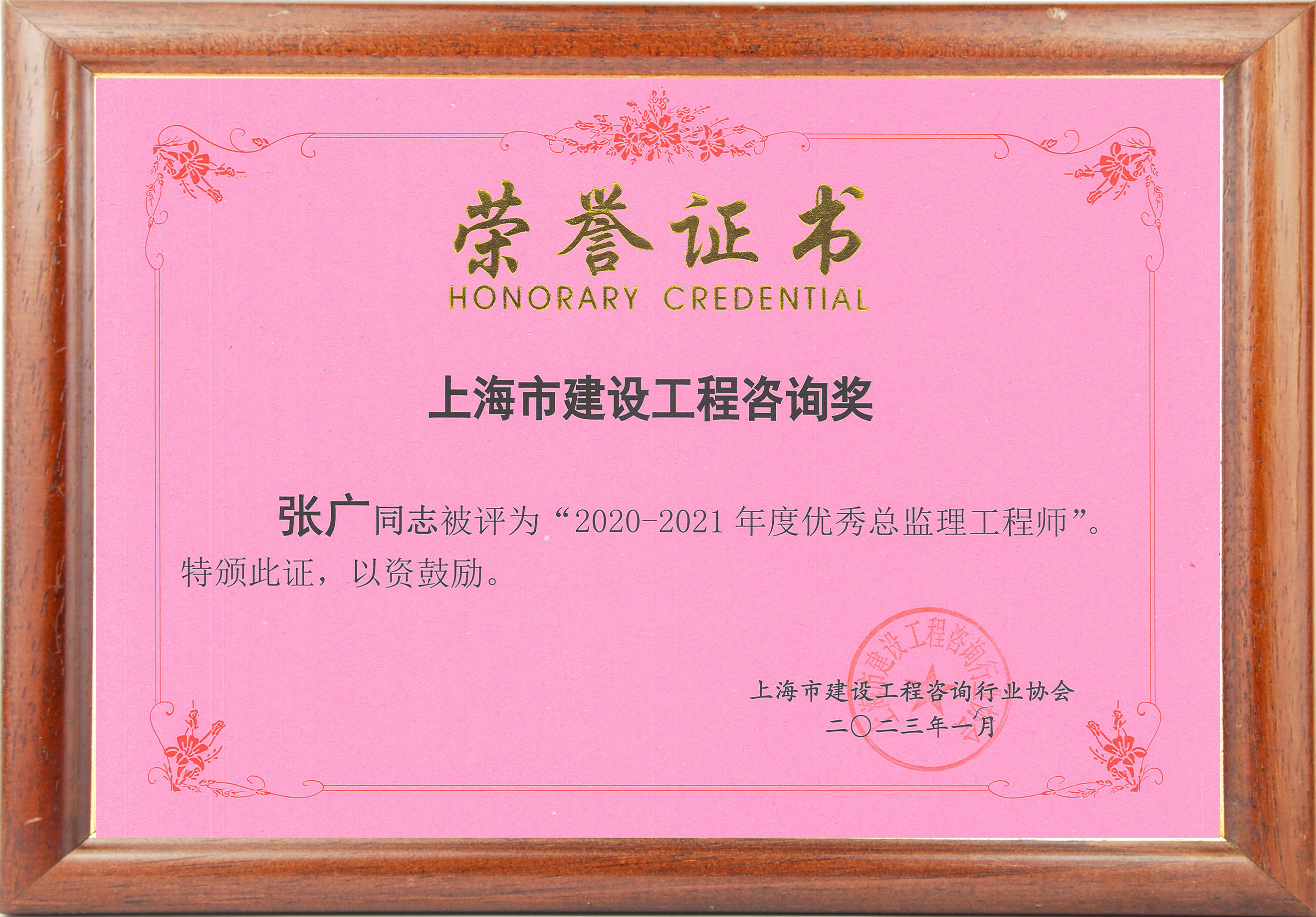 2020-2021年度上海市优秀总监理工程师(张广)