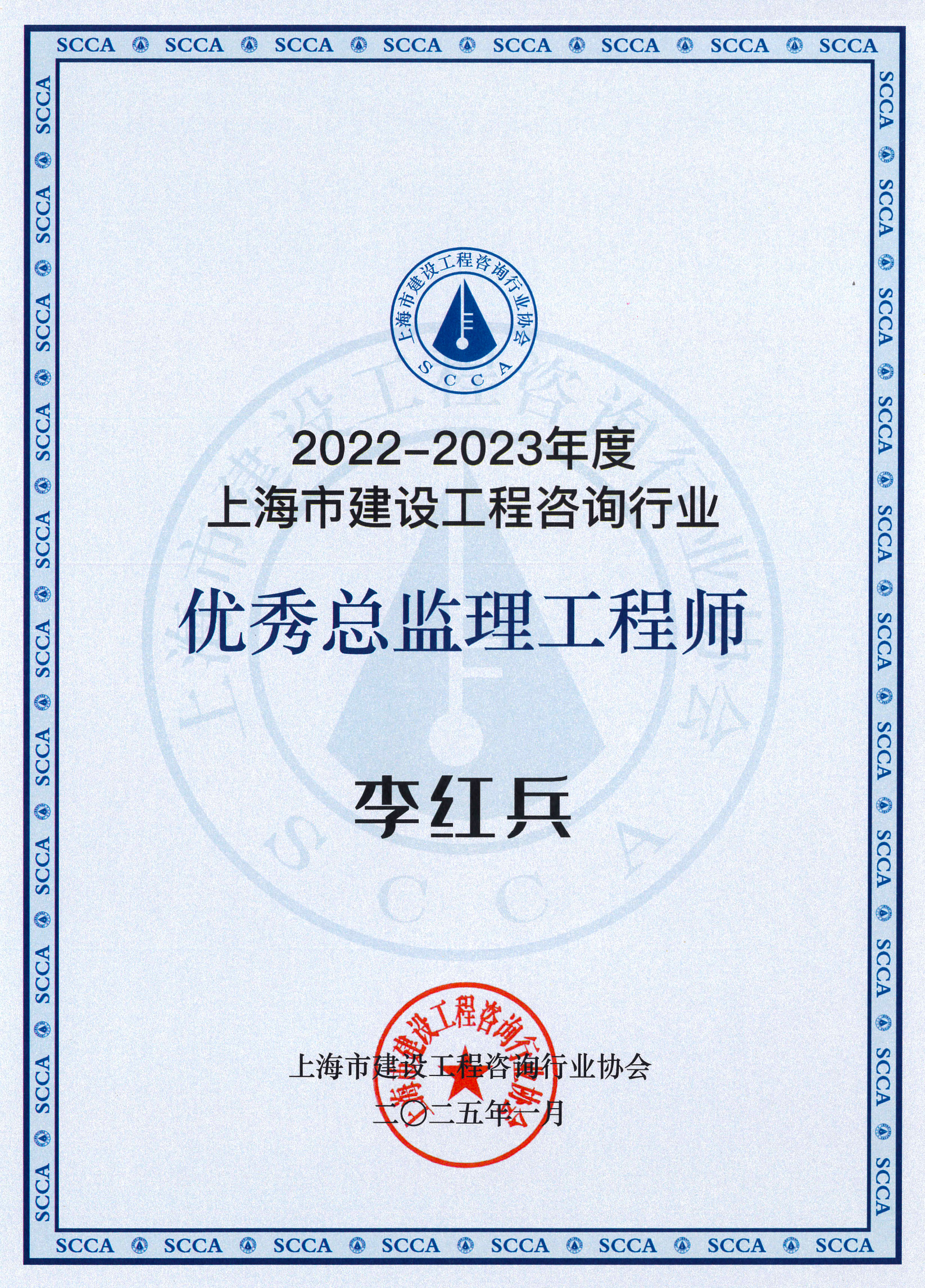 2022-2023年度上海市优秀总监理工程师(李红兵)