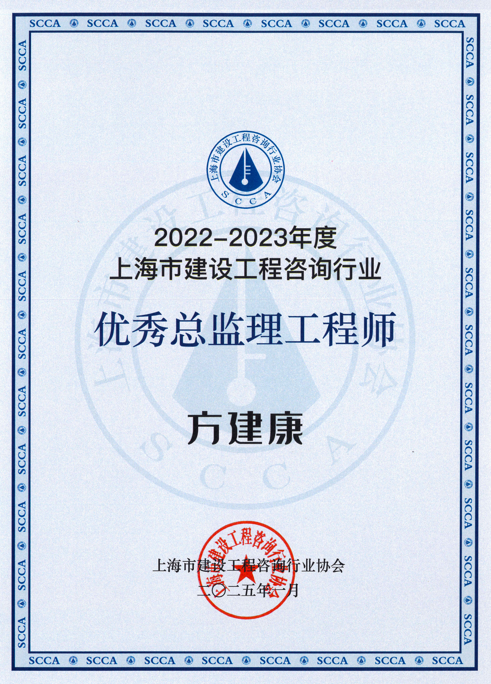 2022-2023年度上海市优秀总监理工程师(方建康)