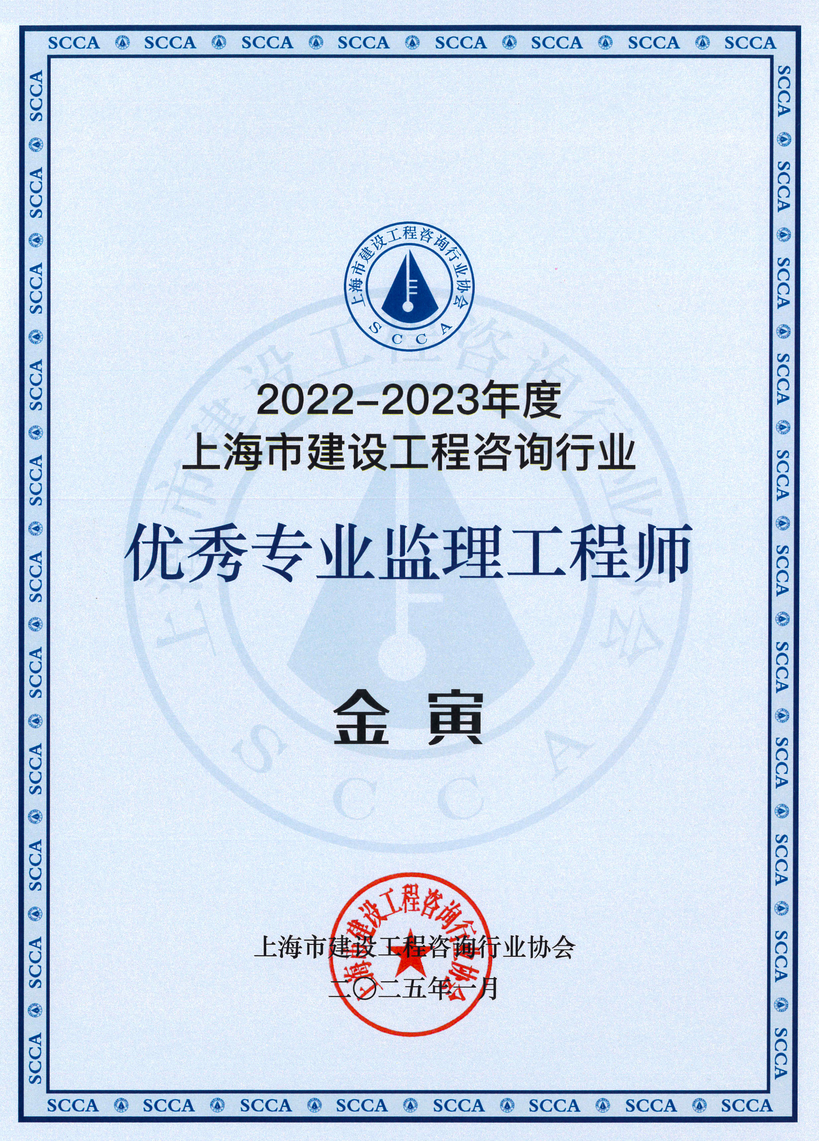 2022-2023年度上海市优秀专业监理工程师(金寅)