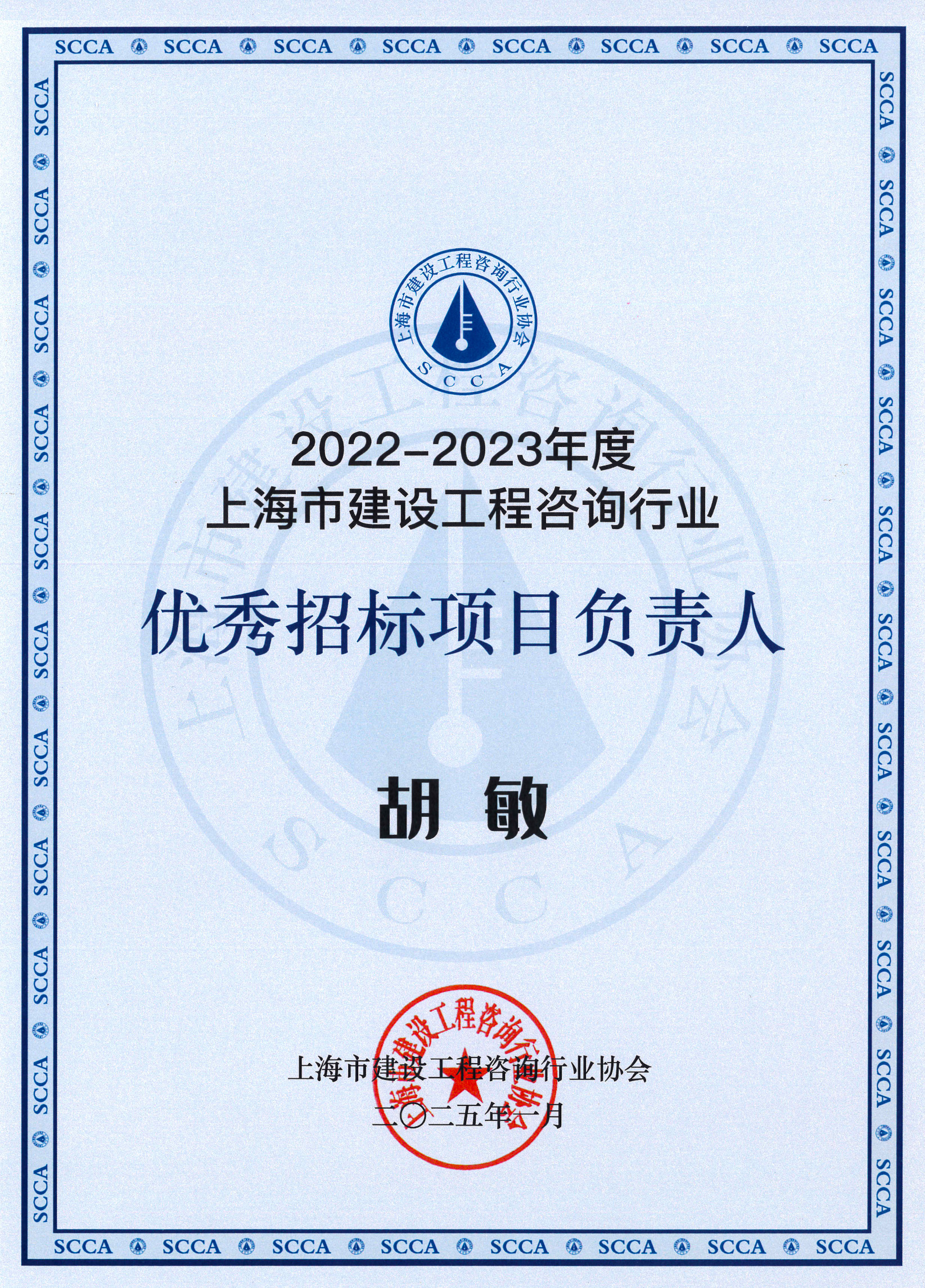 2022-2023年度上海市优秀招标项目负责人(胡敏)