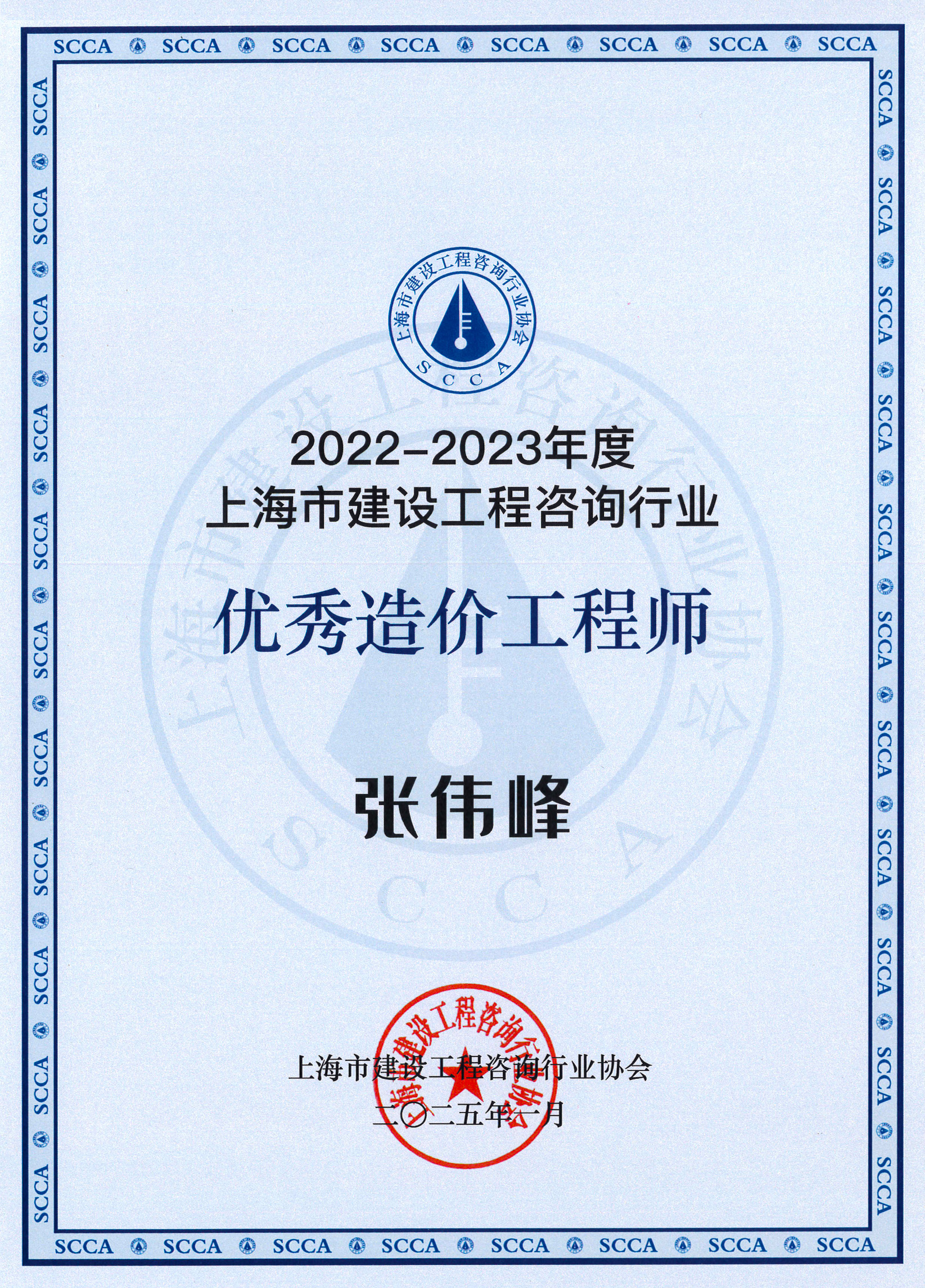 2022-2023年度上海市优秀造价工程师(张伟峰)